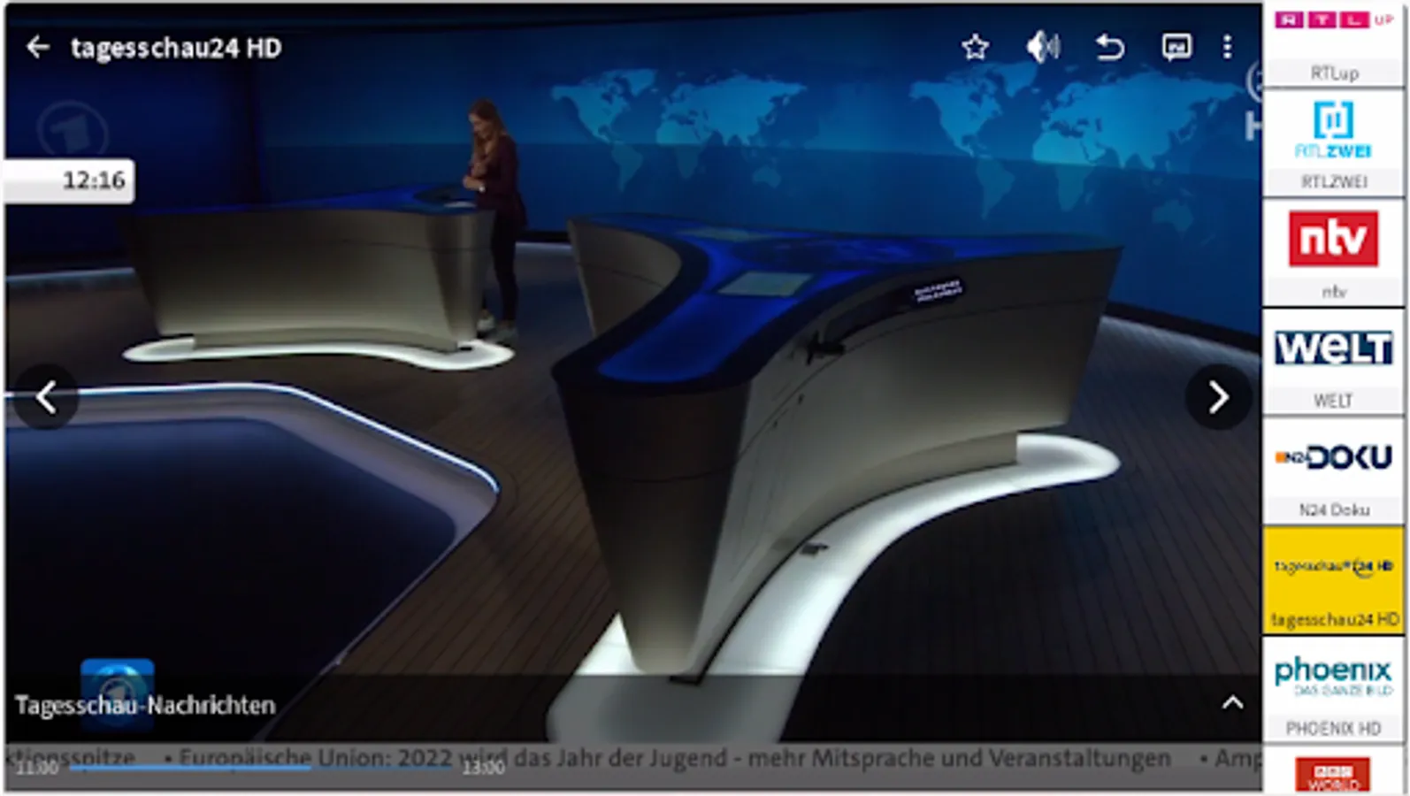- Switch channels by swiping or clicking button