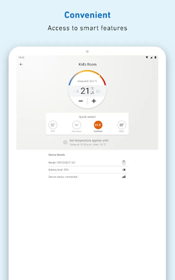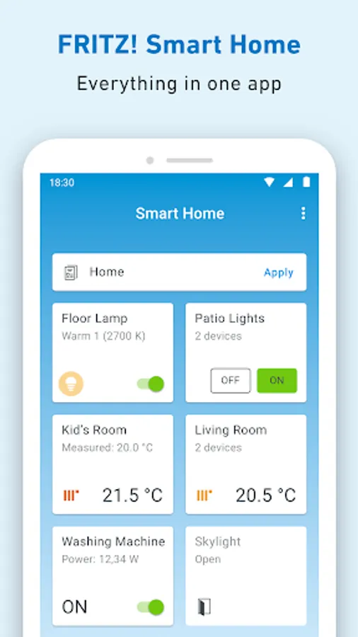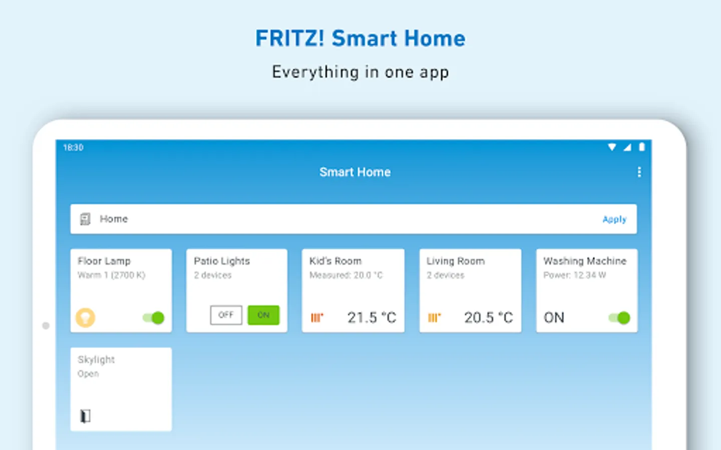 The new FRITZ!App Smart Home is the convenient remote control for your FRITZ! Smart Home devices, at home or from on the go. All you need is a FRITZ!Box with FRITZOS 7.10 or higher.