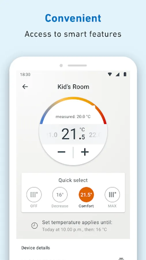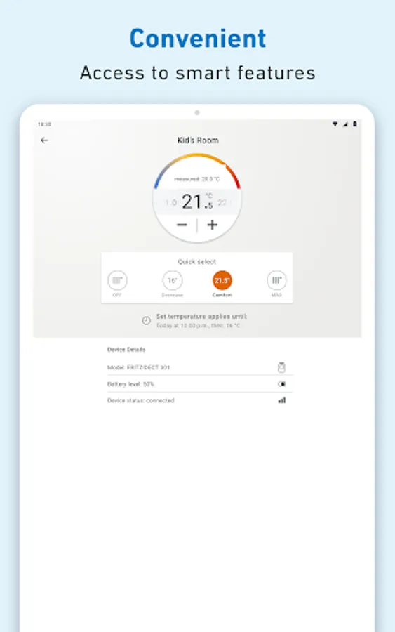 - use the FRITZ!DECT 301 radiator control to heat the living room to the temperature you like, and save money with automatic heating plans.