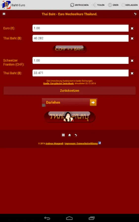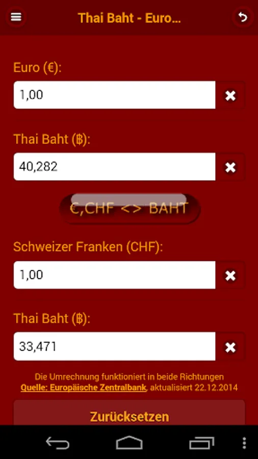 Day to Day Conversion Euro €, Swiss Franc (CHF) to and from Thailand Thai Baht ฿. Exchange rate calculator with current THAILAND Bath exchange rates. บาท / ยูโร