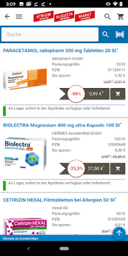 Order your medication from the comfort of your own home or on the go in your Atrium / Augusta and Markt pharmacy and always be informed about our special offers.