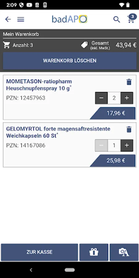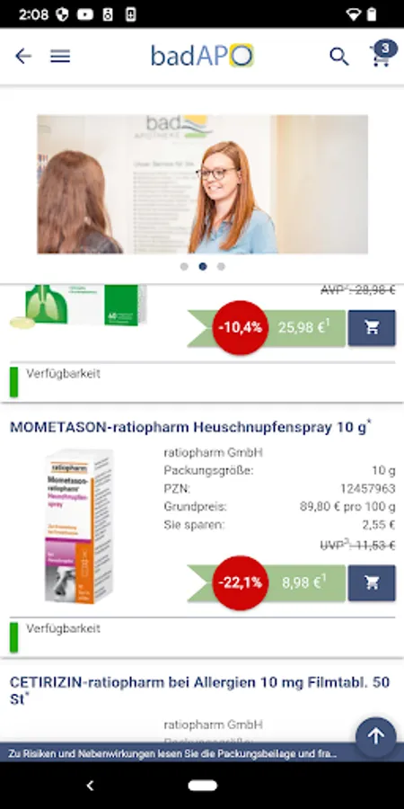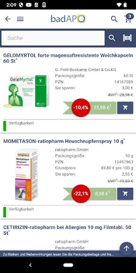 As you can see online what is immediately ready for collection in our pharmacy (green) and can each deliverable item (yellow) from the German pharmaceutical assortment preorder.