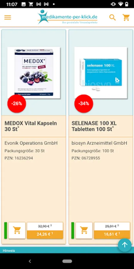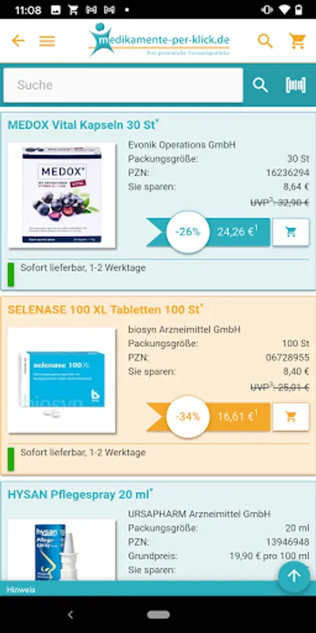 Order your medicines in a few moments at affordable prices. Your order will reach you quickly and conveniently at home. From an order value of 15 € we take care of the postage for you.