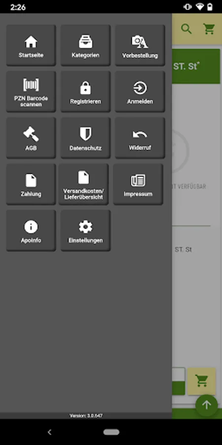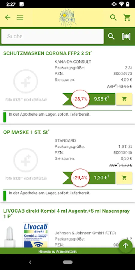 Using the app you can find around the clock your desired preparation in the product categories or by searching by name, indication or PZN. The traffic light colors will show immediately the availability of:
