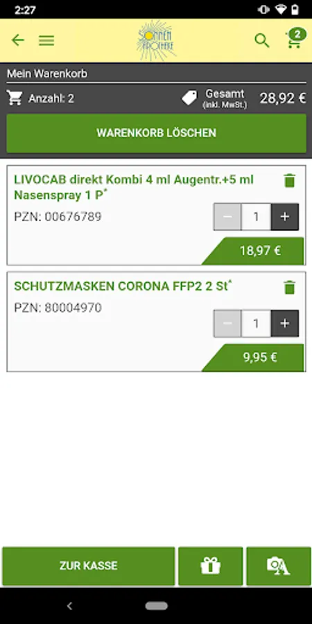 Welcome to your sun pharmacies App. Order your medications from the comfort of your home or on the go with your smartphone or tablet at your local pharmacy. Combine the benefits of an online order with the benefits of personal care in your solar pharmacy. If you are a customer of our branch, Odenwald Pharmacy in Odenwaldstr. be 122, 64372 Ober-Ramstadt / low-Modau, they can also use this app. then they pay attention when filling out the order that they want a pickup or a messenger service through the Odenwald pharmacy.