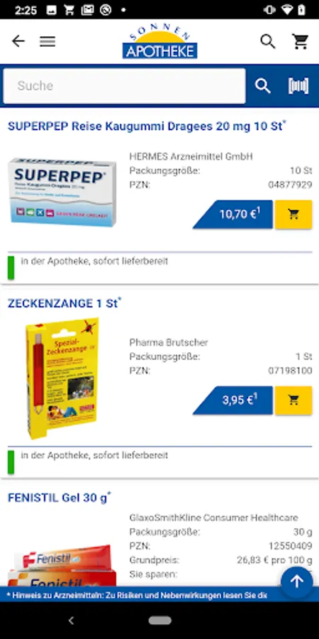 The direct "click" for Sonnen Apotheke is free and without waiting.
