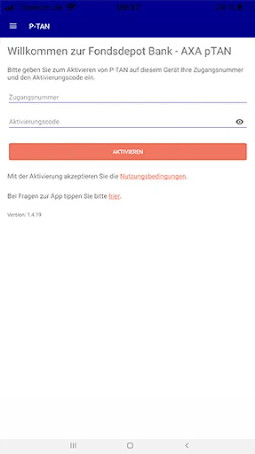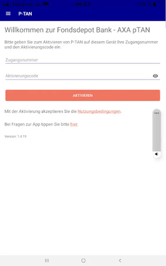 With Fondsdepot Bank - AXA pTAN you choose a simple and secure TAN procedure on your smartphone or tablet. You can get the TAN required for transactions directly on your Android device via the app