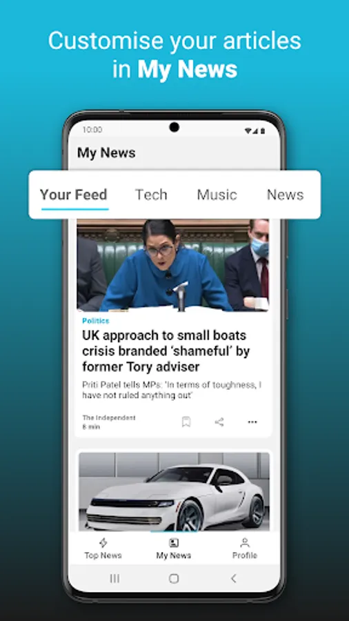 As an advanced news app, upday offers you the latest news stories and articles from a variety of publishers, magazines and newspapers such as BBC News, The Guardian, The Independent, The Sun and a lot more.