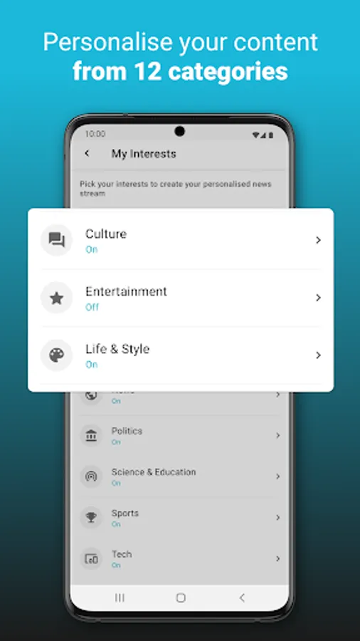 • Choose from categories such as Culture, Tech, Life & Style, Music and Sport