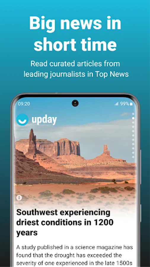 upday is an independent, free news app with an ever-growing reach across 35 countries and a service that revolutionized how 25+ million people consume news. Combining highly innovative technology and journalistic expertise, upday offers readers a bite-size overview of the most important, up-to-the-minute local and global news headlines plus trending stories curated to your preferences and reading history. And thanks to our breaking headlines notifications, you can stay up-to-date with the latest online news and current affairs when they happen.