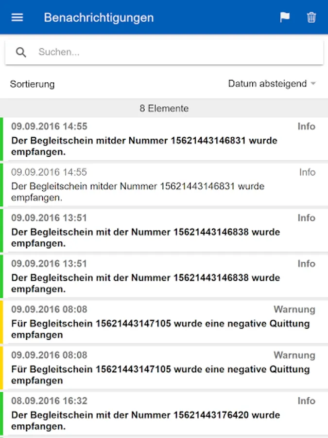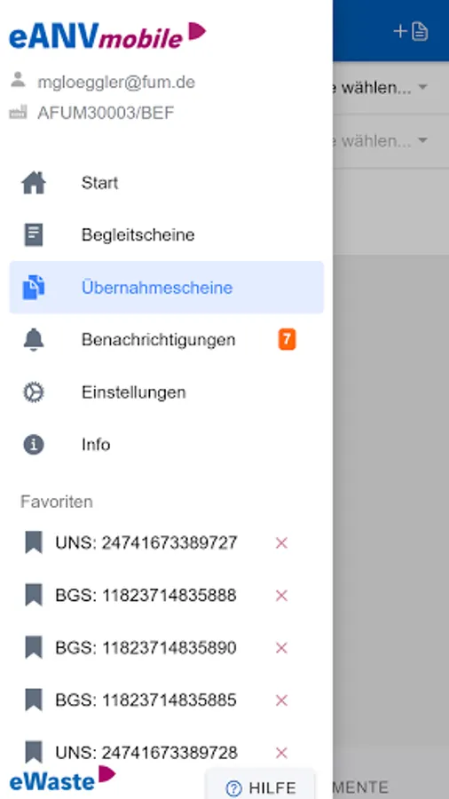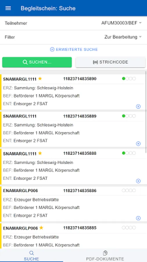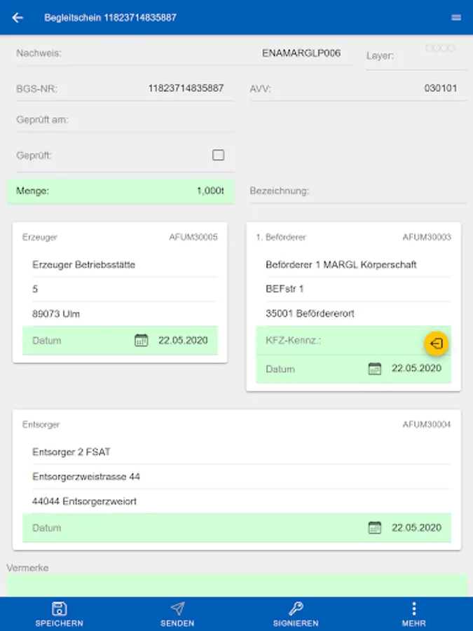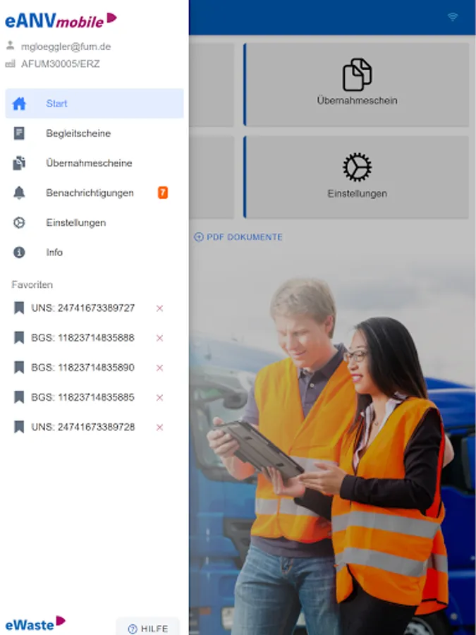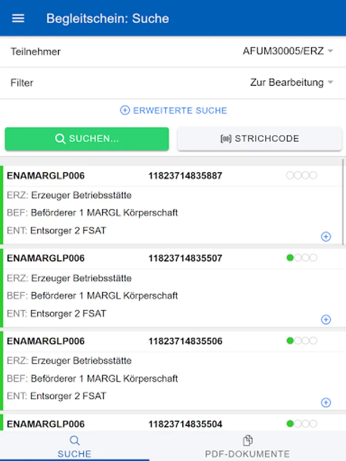 Important functions such as the completion of accompanying and transfer notes or the download of documents as PDF are also available. Filterable and sortable lists give you a good overview of your documents. Thanks to the offline capability of eWaste mobile, you have your papers with you anywhere and anytime. This saves you the trouble of printing out and carrying the papers with you.