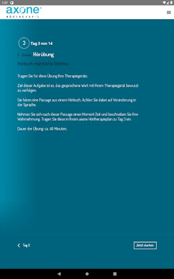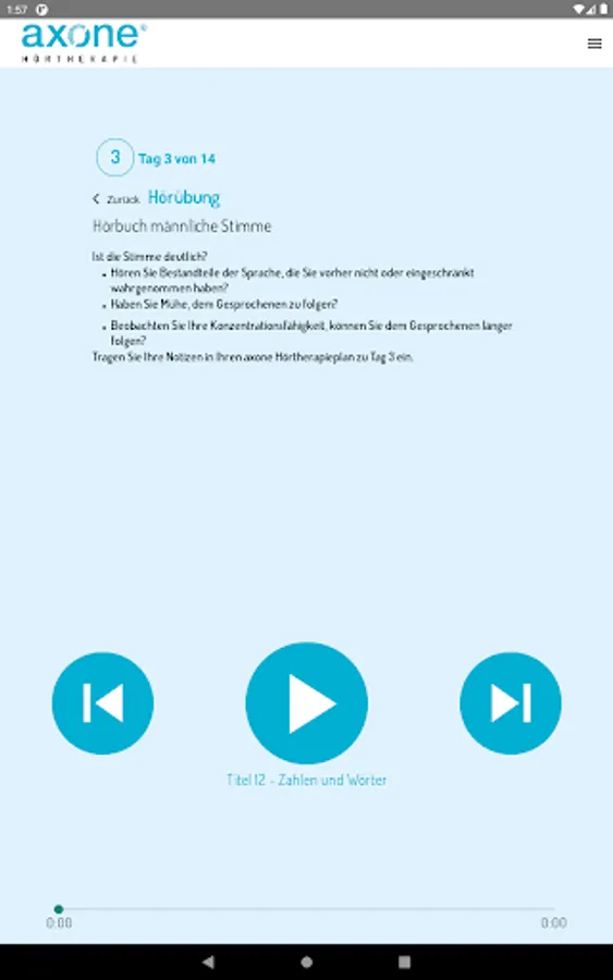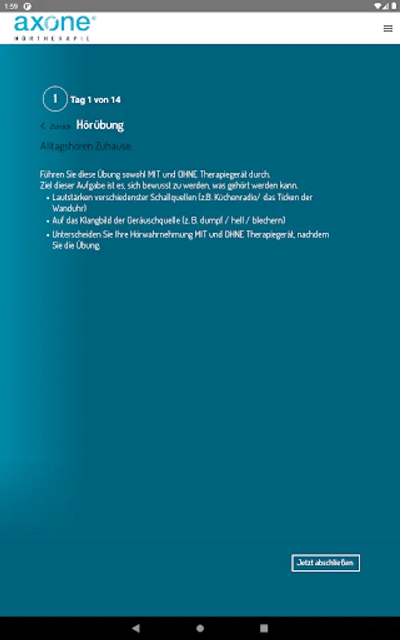 For an optimal course, we recommend that you practice at least 30 minutes a day for 2 weeks and wear the training hearing aids for at least 10 hours a day during this time.