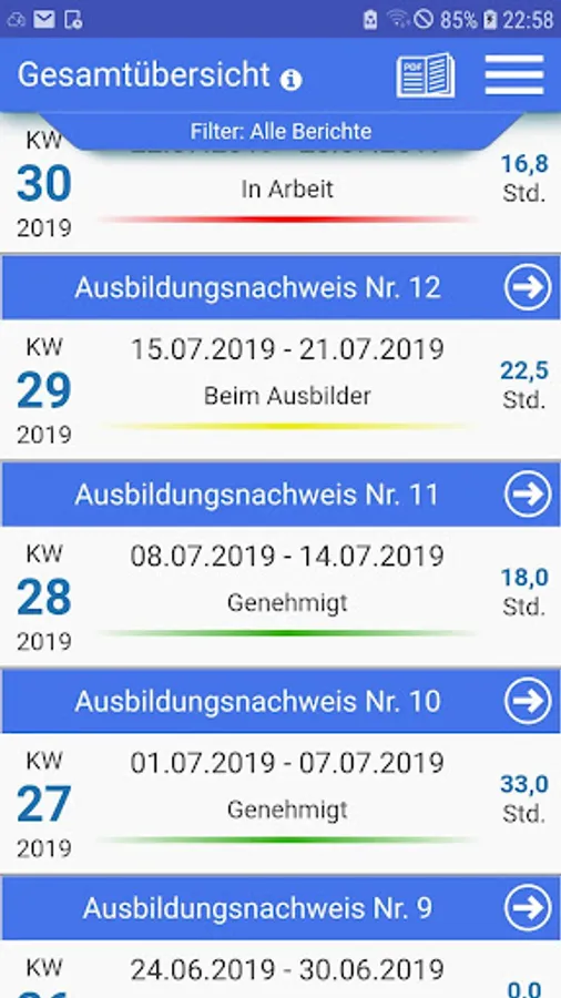 Simplify your processes in training. Simple handling for trainers and trainees. All information on the record book at a glance.
