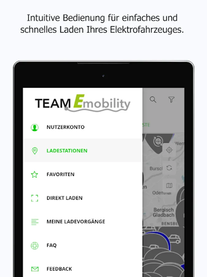 The TE App is your convenient medium for easy access to a wide range of charging stations. All information about the TE network, the affiliated partners as well as frequently asked questions and answers can be found at www.team-emobility.de.