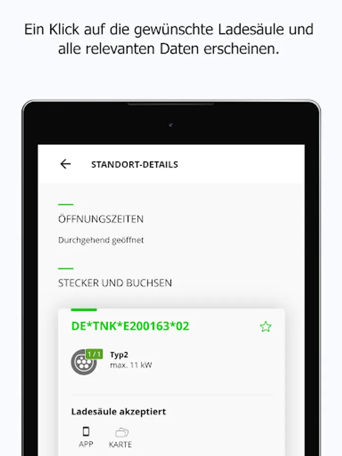 "The TE app gives you fast and convenient access to the charging infrastructure for electric vehicles. You can use it to reach all TE partners and also the charging stations of other partners - if they are connected via roaming. The TE app gives you access to a large number at charging stations in Germany.