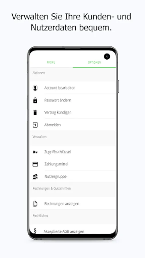 You can manage your personal data and billing information directly in the app. All loading processes go to your personal user account; billing is easy via direct debit or credit card. In addition, past and current charging processes, including electricity consumption, meter readings and the costs associated with charging can be viewed live.