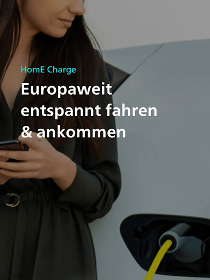 With the HomE Charge App you get Europe-wide charging access for your e-car in a constantly growing network with currently over 256,000 charging points. Clear availability, convenient route planning, transparent cost information and individual payment and billing options ensure you a trouble-free journey and a relaxed arrival.