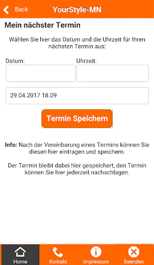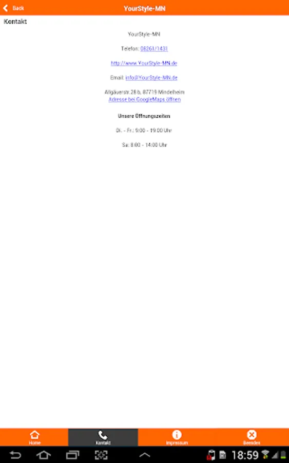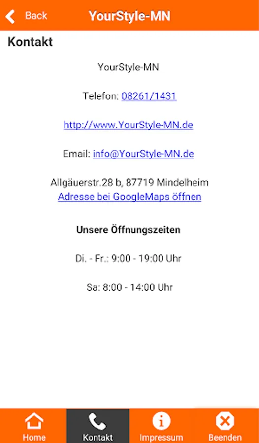 The YourStyle Mindelheim hair salon app (Your Style MN) offers the following functionalities: