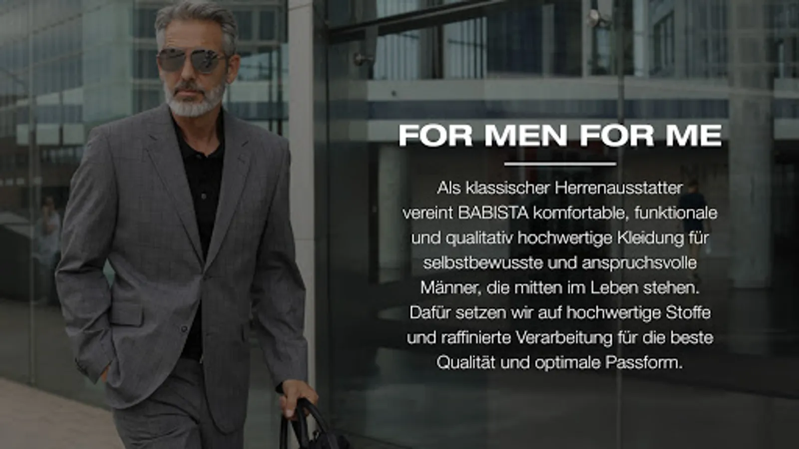 As a classic men's outfitter, BABISTA combines comfortable, functional and high-quality clothing for self-confident and discerning men who are in the middle of life. For this we rely on high-quality fabrics and workmanship for the best quality and optimal fit.