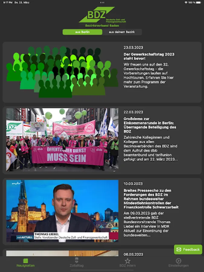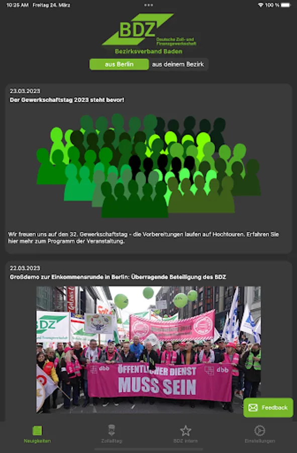 With the news from Berlin or your district, you are always up to date on current developments in the union or the customs administration.