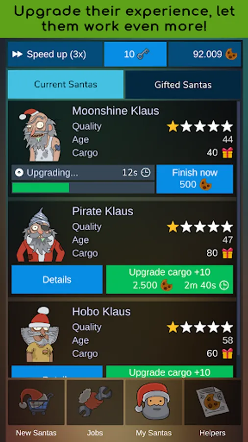 - Use cookie points to complete tasks or simple unlock a new Santa