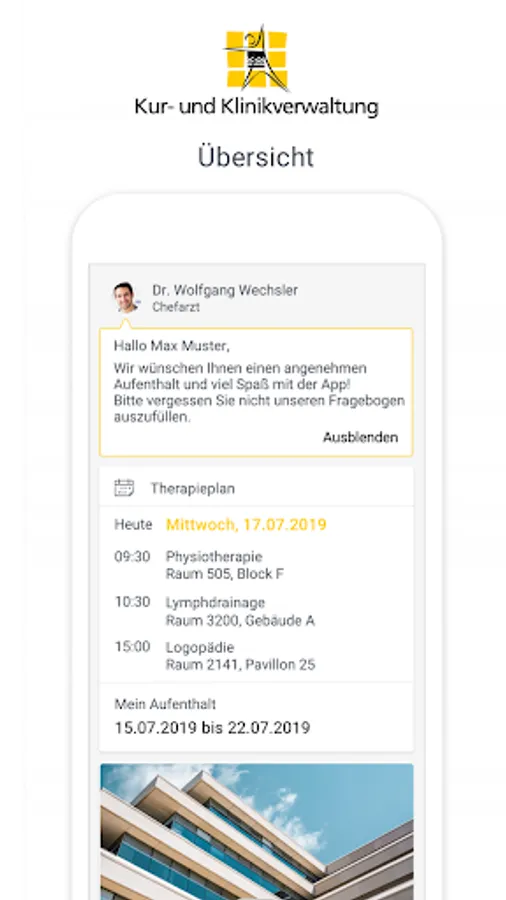 The App of the Rehabilitation Centre Bad Rappenau is your digital clinic attendant. It compains you before, during and also after your stay in our clinic and makes it even more comfortable for you.