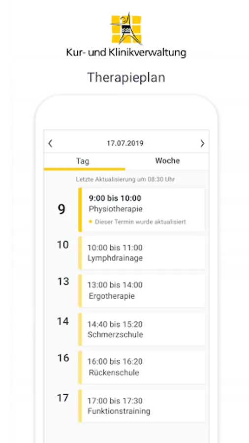 • Your individual therapy plan and information about time, room, therapist and realtime changes