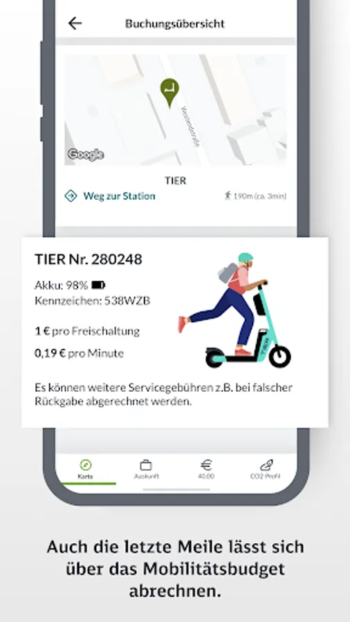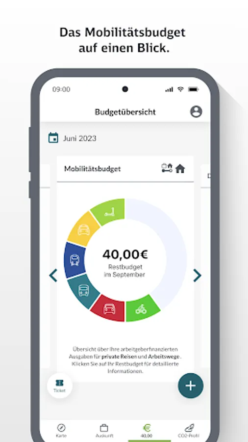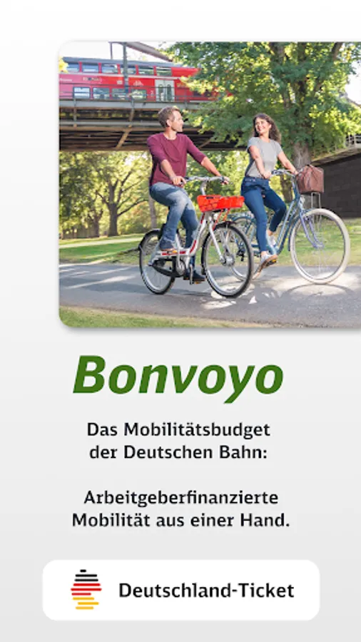 You can use Bonvoyo, Deutsche Bahn's mobility budget, to plan, book and pay for your journeys and submit travel expenses. The expenses are offset against your individual mobility credit provided by your employer. The current budget status and past bookings can be viewed transparently in the app at any time.