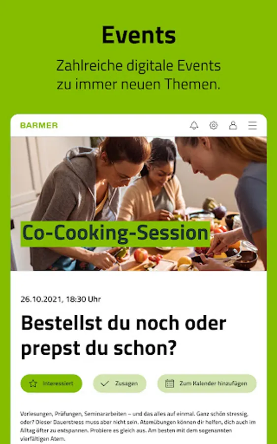 - Co-Cooking Sessions: Our professional chefs cook digitally with you in your kitchen. Here you will get to know healthy and inexpensive recipes and the joy of cooking!
