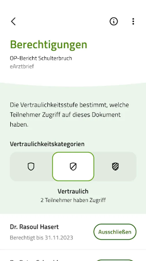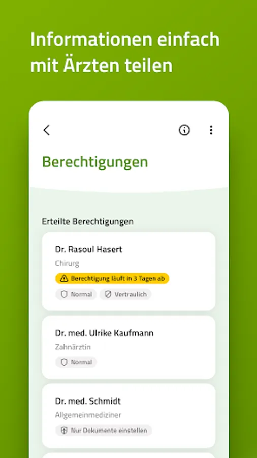 You decide which practices and hospitals can access your data and for how long. If you wish, for each document individually.