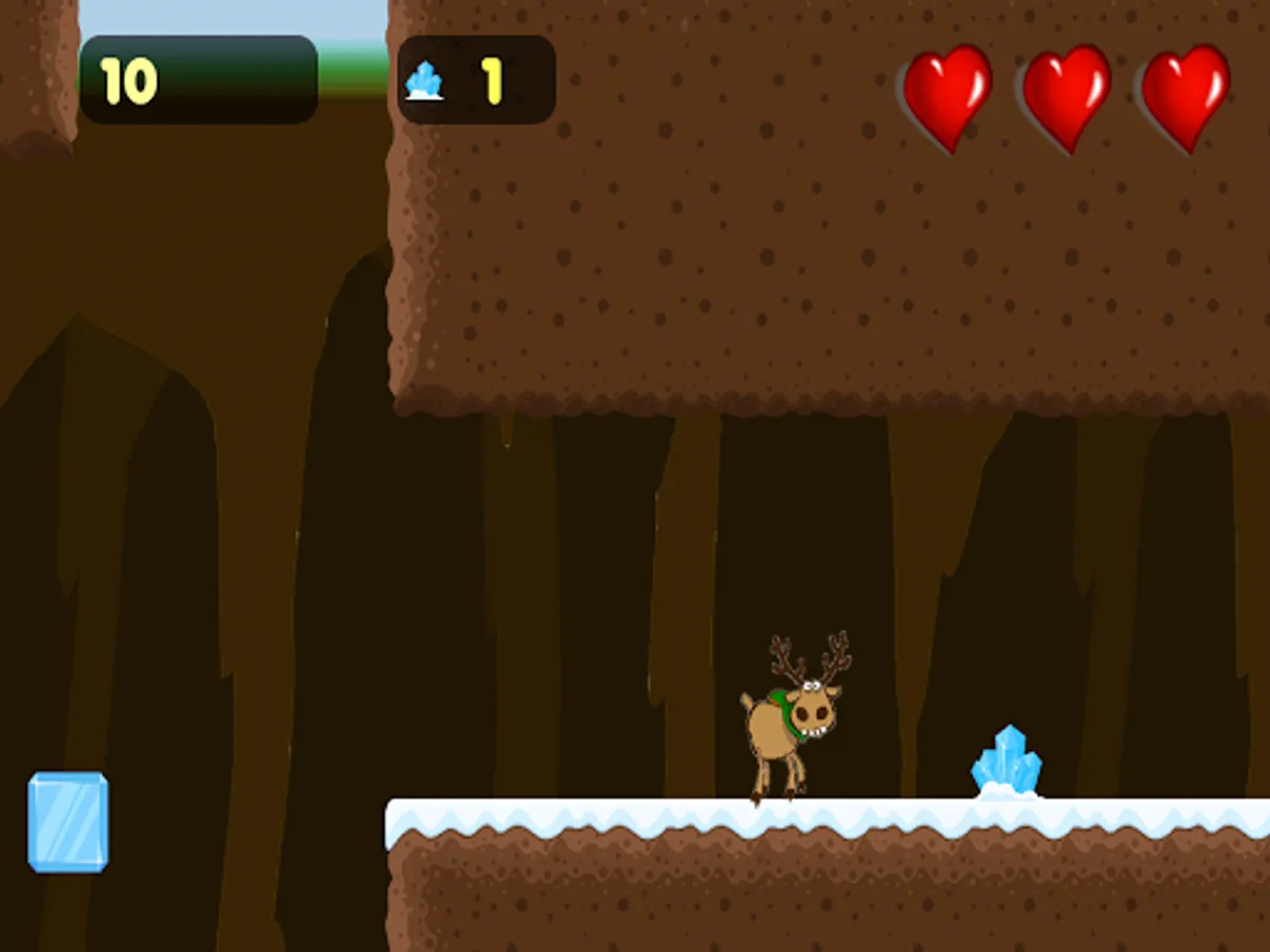 You control the little reindeer by tapping left or right on your mobile or swiping up if you want to jump. Find the hidden treasures deep in the caves and collect the neat little coins to buy some power-ups that can help you further in this awesome platform game.