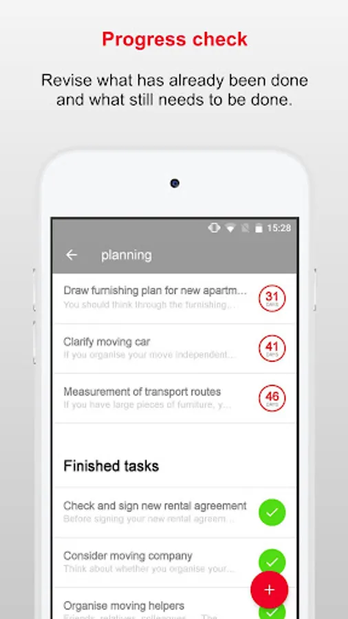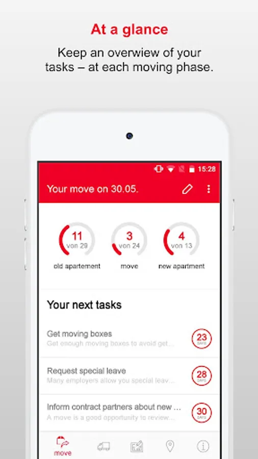 •The possibility to share tasks via messenger to integrate your moving helpers.