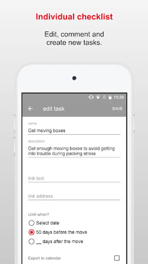 •A calendar export for all important tasks with a reminder, so you don't forget dates