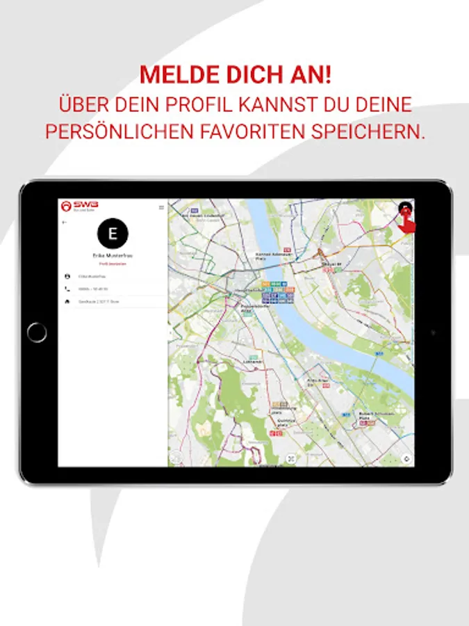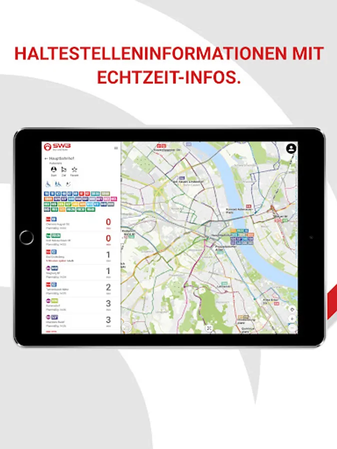With "Line live" you can select your SWB line from a list and display the real-time positions of the vehicles. The visualized positions represent the actual locations and are not extrapolated from timetable tables - the vehicle is therefore also at the point where it is displayed on the map.
