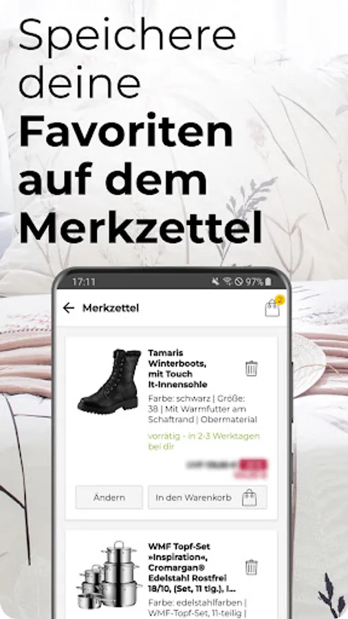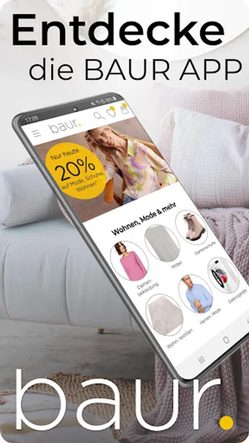 With the BAUR app, you have it in your hands: Immerse yourself in the variety of brands and offers from over 800,000 living and fashion deals, regular online sales and our large outlet for brands.
