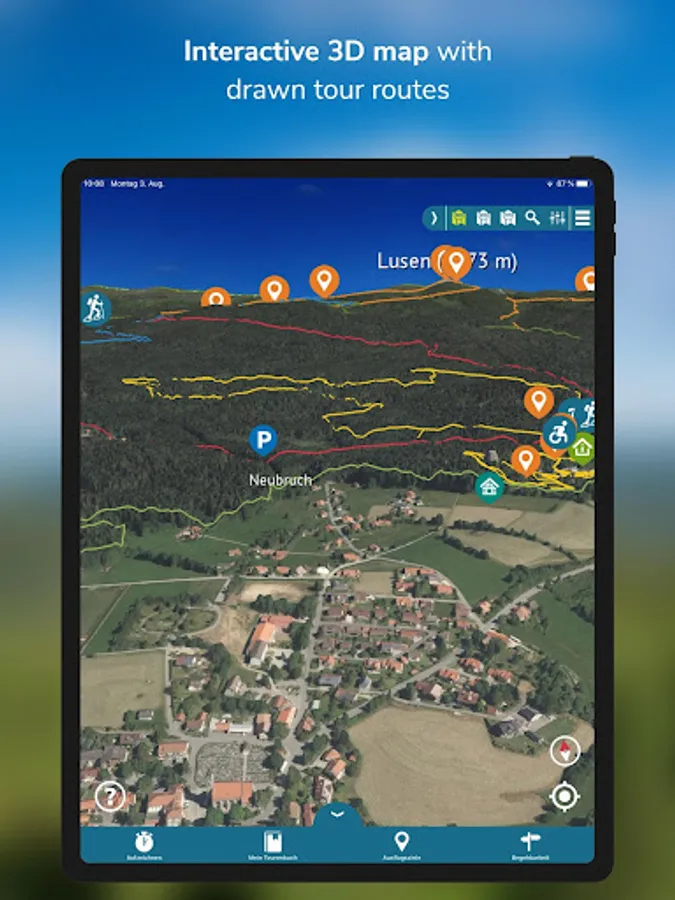 Experience the forest - understand nature - feel the wilderness: Up to 1.4 million visitors a year can now experience the Bavarian Forest National Park anew with a 3D map. The unique landscape with its 500 kilometers of bike or hiking trails is shown as it really is. All important geographical information is integrated into the map. With an exact location function, your own position can be checked at any time. A change between 3D map, topographic map and aerial view is possible at any time.