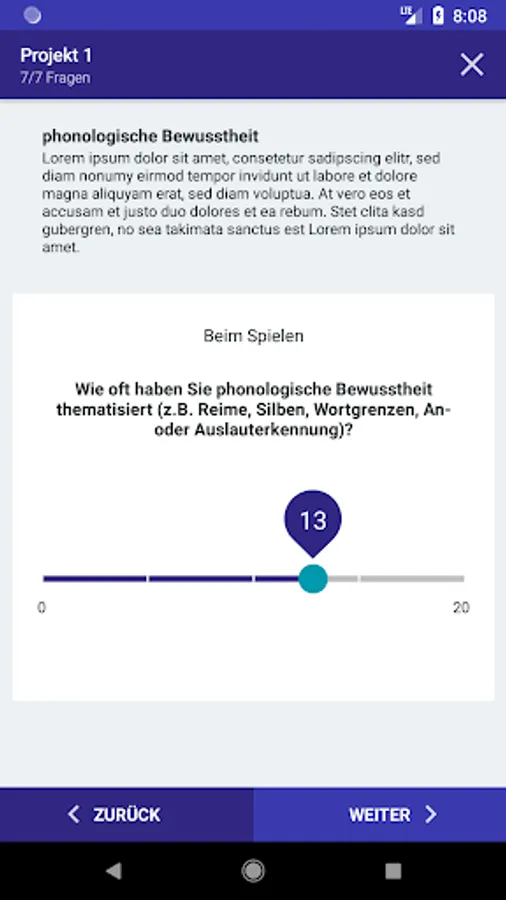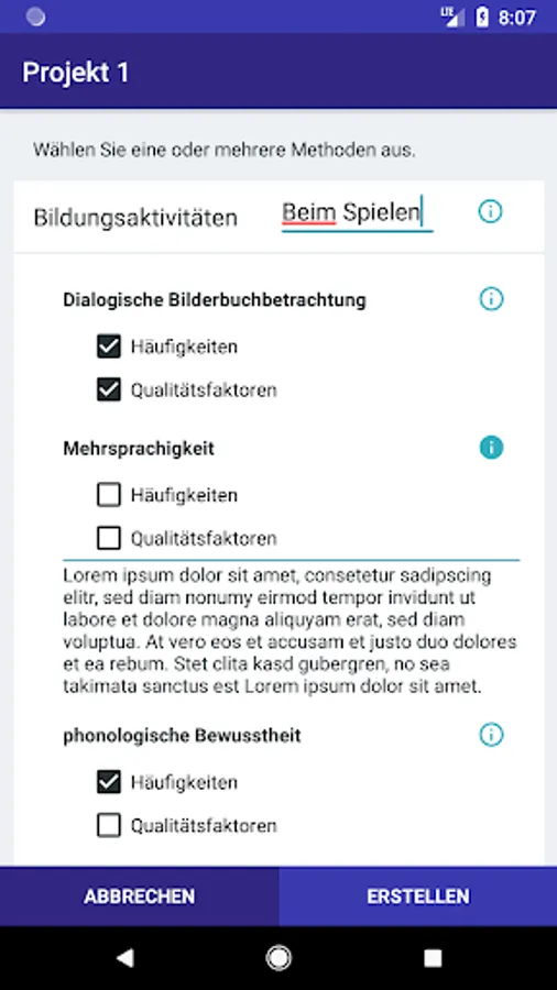 "SpraBi - Reflect Language Education Activities in Daycare Life" is an app to support the transfer of education, continuing education and further education content in the field of everyday integrated language education. The app is intended to help educational professionals to reflect more consciously when and how language-supporting strategies and linguistic educational activities are implemented in day-to-day childcare.