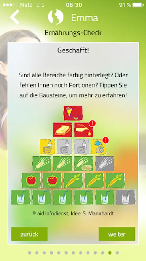 The app is sponsored by the Bavarian Ministry of Food, Agriculture and Forestry (StMELF). The content of the App based on the recommendations of the network into being healthy, one in SHAPE initiative of the Federal Government.