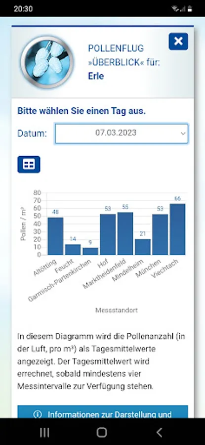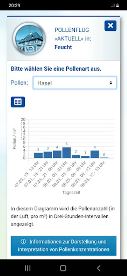 - Overview of the pollen count of days gone by at the eight locations