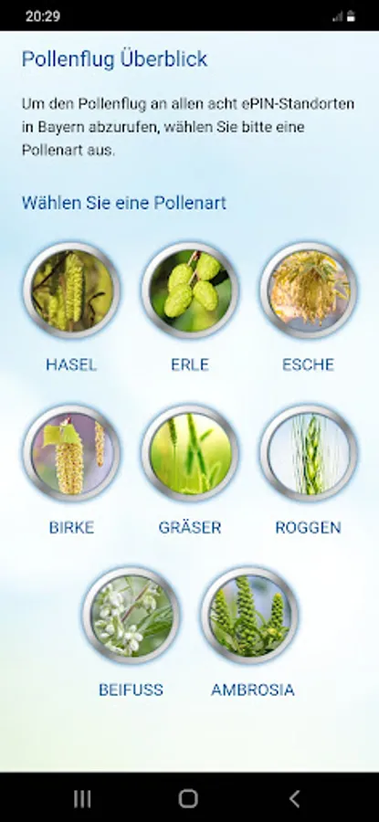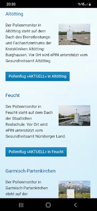 The electronic pollen information network (ePIN) consists of eight electronic pollen monitors in eight districts in Bavaria (Altötting, Feucht, Garmisch-Partenkirchen, Hof, Marktheidenfeld, Mindelheim, Munich, Viechtach). This network enables real-time pollen forecast. This allows allergy sufferers to specifically control their medication intake and exposure to pollen.