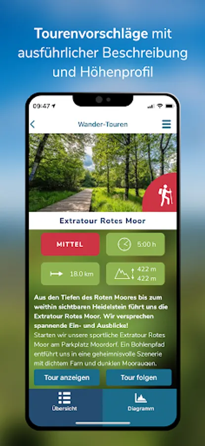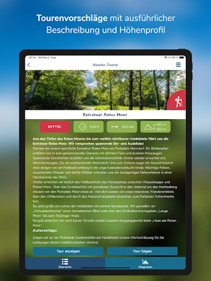 And if you want to follow your route: with the built-in tracking tool, users can record their own tours. On the way on the tour, if the function is switched on, your own position, the distance covered, the duration of the tour and the current altitude meters are displayed with pinpoint accuracy. Photos can also be saved via “My Tour” and stored in a personal tour book. The tracking function facilitates orientation in the national park.