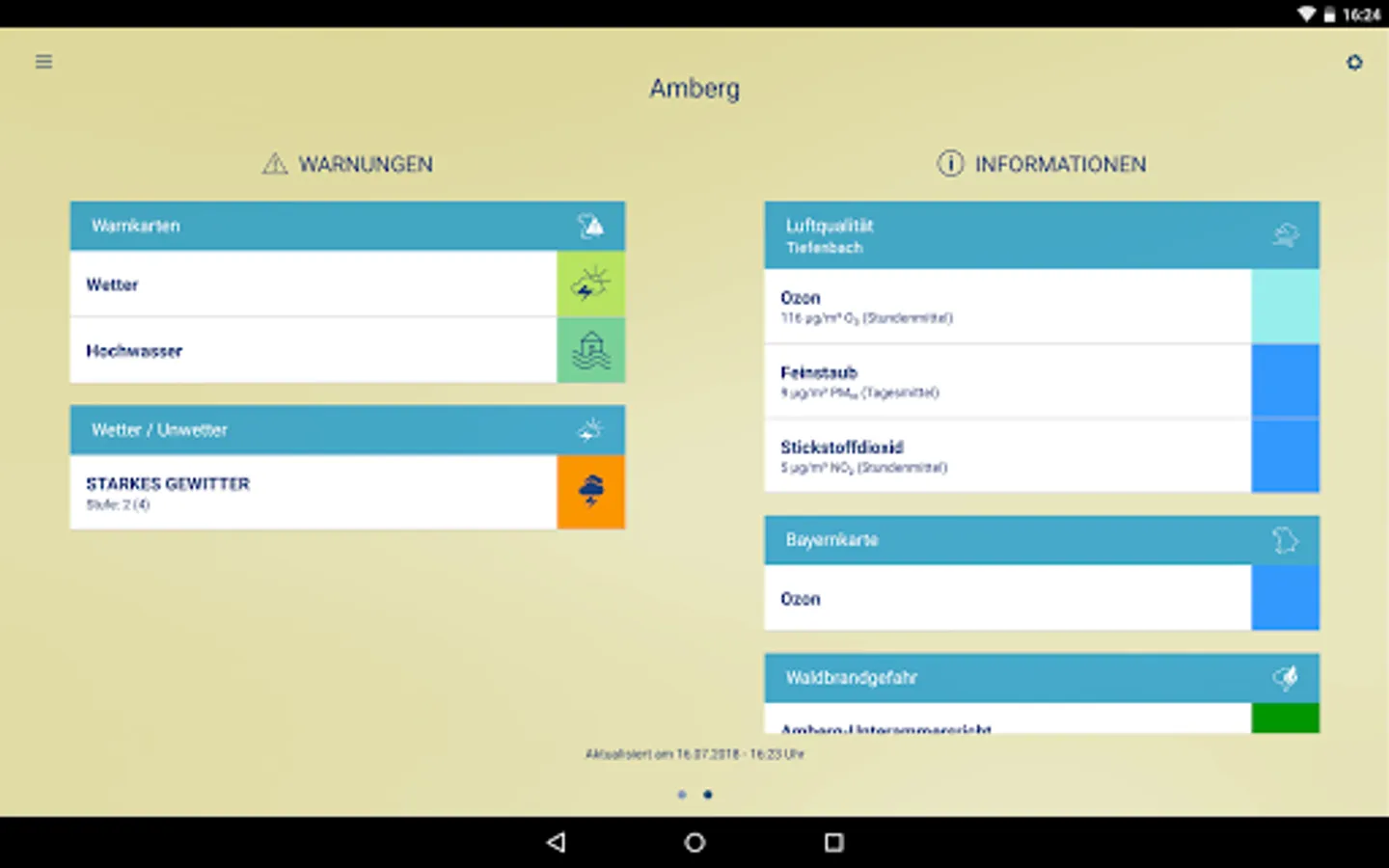 With this app, the Bavarian State Ministry of Environment and Consumer Protection wants to immediately warn Bavaria's citizens when natural or environmental hazards occur in the form of floods, storms, avalanches or exceeding of ozone limits. At the same time, citizens can find out about their current environmental situation.