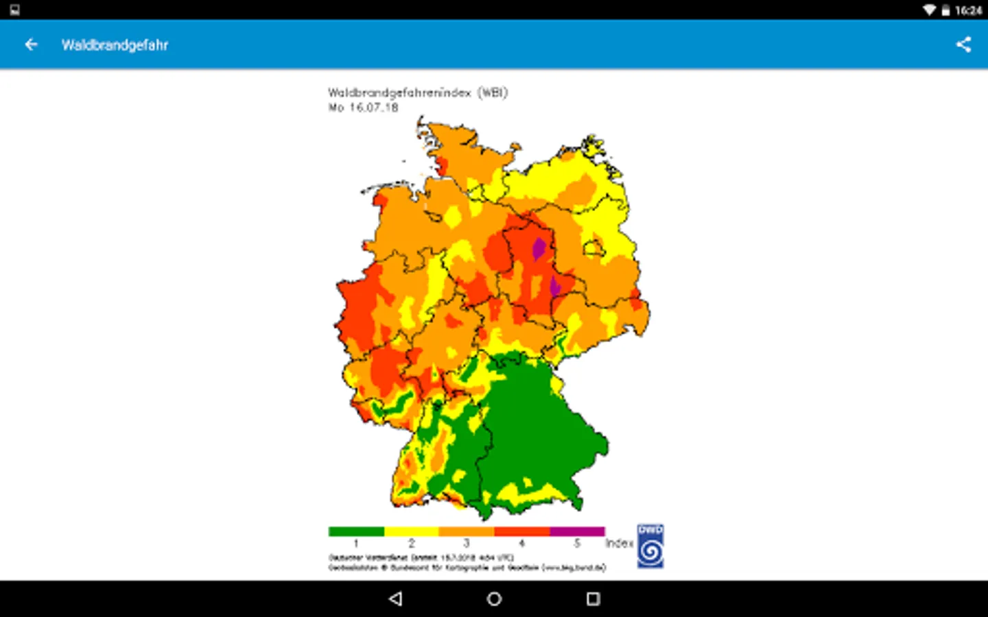 We thank the German Weather Service for the good cooperation and the provision of the current weather and storm data, the pollen index and the forest fire danger index, which you can use in this app.