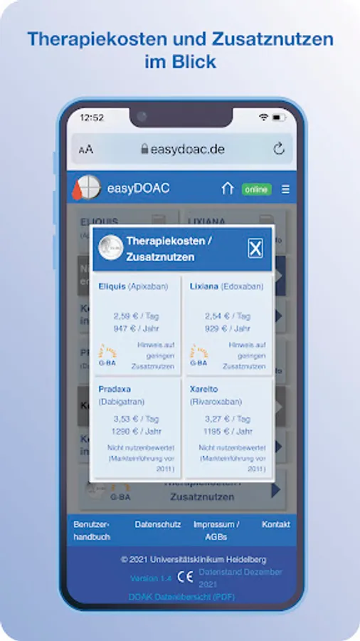The easyDOAC is a CE-marked class I medical device (MDD) and serves as a digital support for doctors and pharmacists.