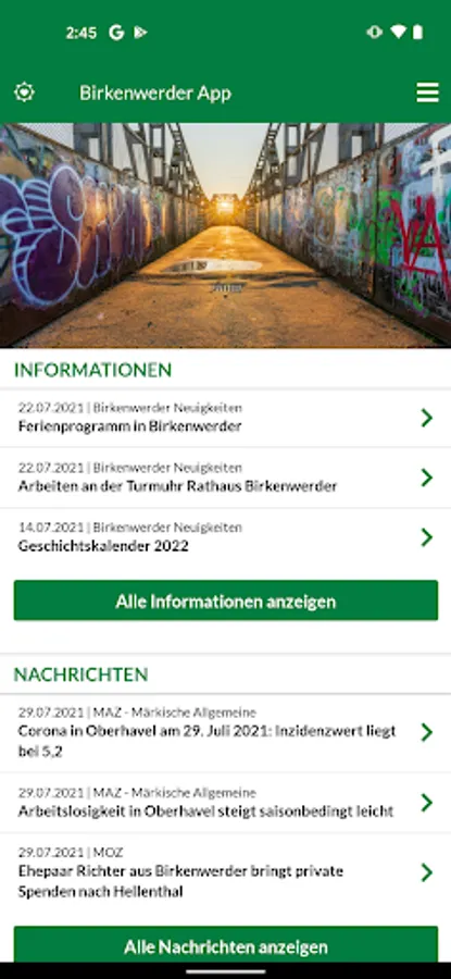 The Birkenwerder app is a cooperative news portal for citizens, visitors and everyone who is interested in Birkenwerder. Here you will find the latest local news and events from the city and the “Tourismus-Marketing Brandenburg”. Administrative services can also research or report current problems in the city.
