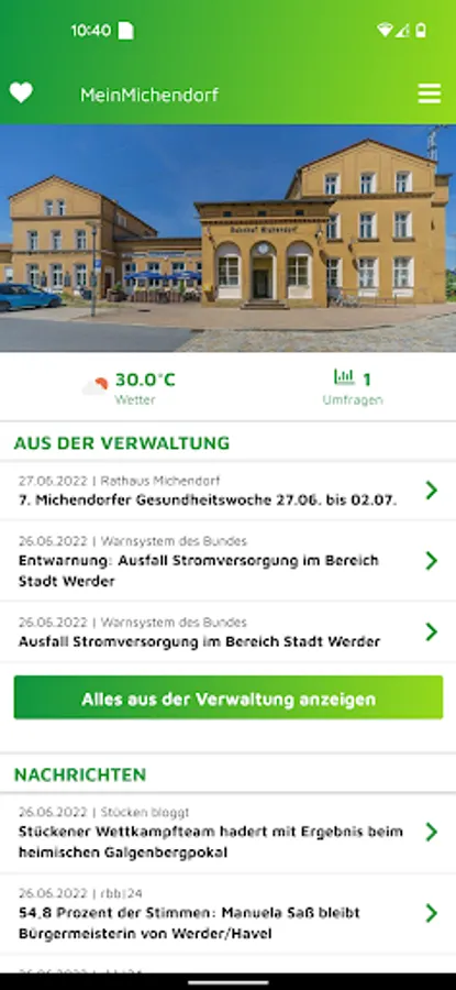 MeinMichendorf is a cooperative news portal for citizens, visitors and everyone who is interested in Michendorf. Here you will find the latest local news and events from the city and the “Tourismus-Marketing Brandenburg”. Administrative services can also research or report current problems in the city.