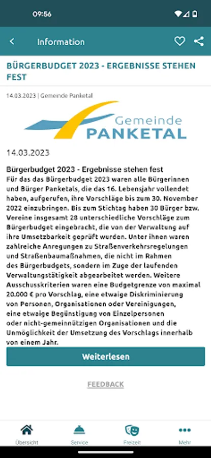 The app "My Panketal" is a cooperative news portal for citizens, visitors and anyone interested in Panketal. Here you will find the latest local news and community events. You can also research administrative services or report current community issues.