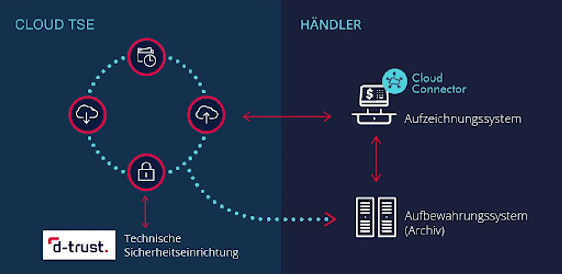 According to the technical guidelines (TR) of the BSI, the assignment of transaction numbers and the data storage of transactions must take place locally in the customer system, even if it is a cloud TSE. The assignment of the signature numbers as well as the signature itself take place centrally in the cloud service. This app is required to implement the BSI specifications.