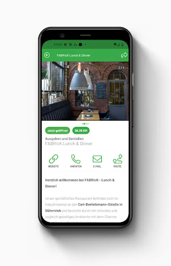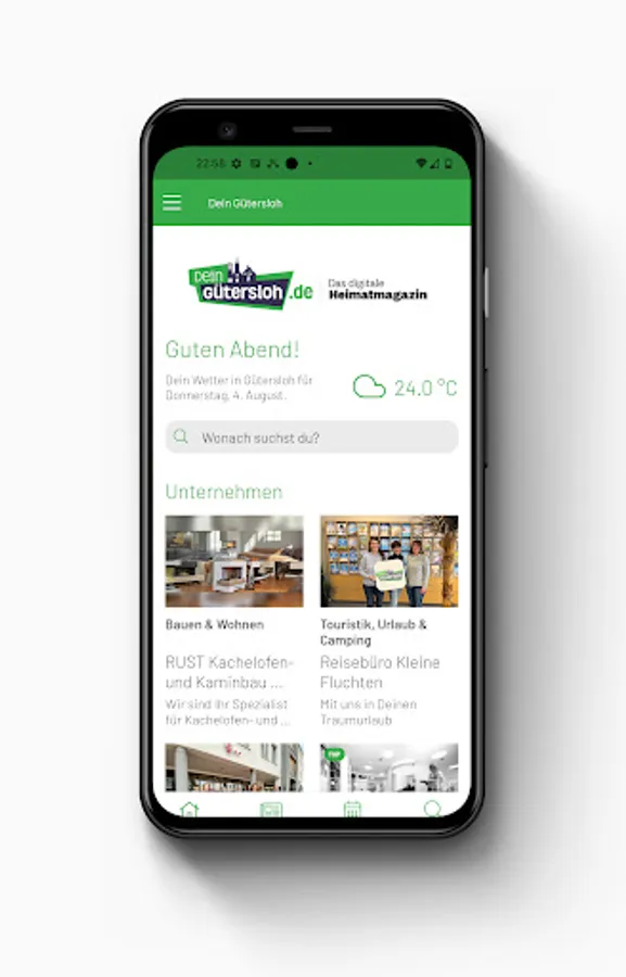 With the Dein Gütersloh app you get exactly the information and tips you need - at any time of the day: in the morning all the latest news from Gütersloh, at lunchtime suitable restaurant locations for your lunch break and at the end of the day there are concerts, visits to the cinema or exciting tips for going out in Guetersloh.