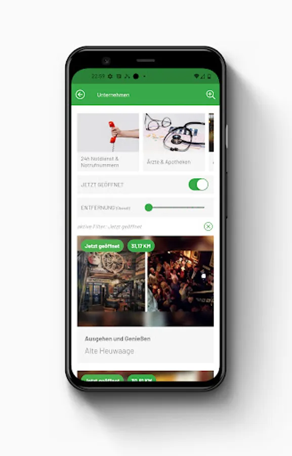 In the app you will find exclusive offers from our partner companies. These are companies, businesses, shops, restaurants, service providers, the self-employed, but above all regional and local partners who offer you special services and benefits in Gütersloh. With the filter function in the app, you can display companies nearby and find out which shops are now open.